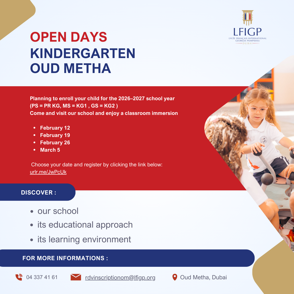 Established in Dubai for over 50 years, the LFIGP is rooted in a long tradition of openness, achievement, and the transmission of the humanist values promoted by the French education system. Our school is part of the AEFE (Agency for French Education Abroad) network, which guarantees a rigorous, ambitious, and truly international education.